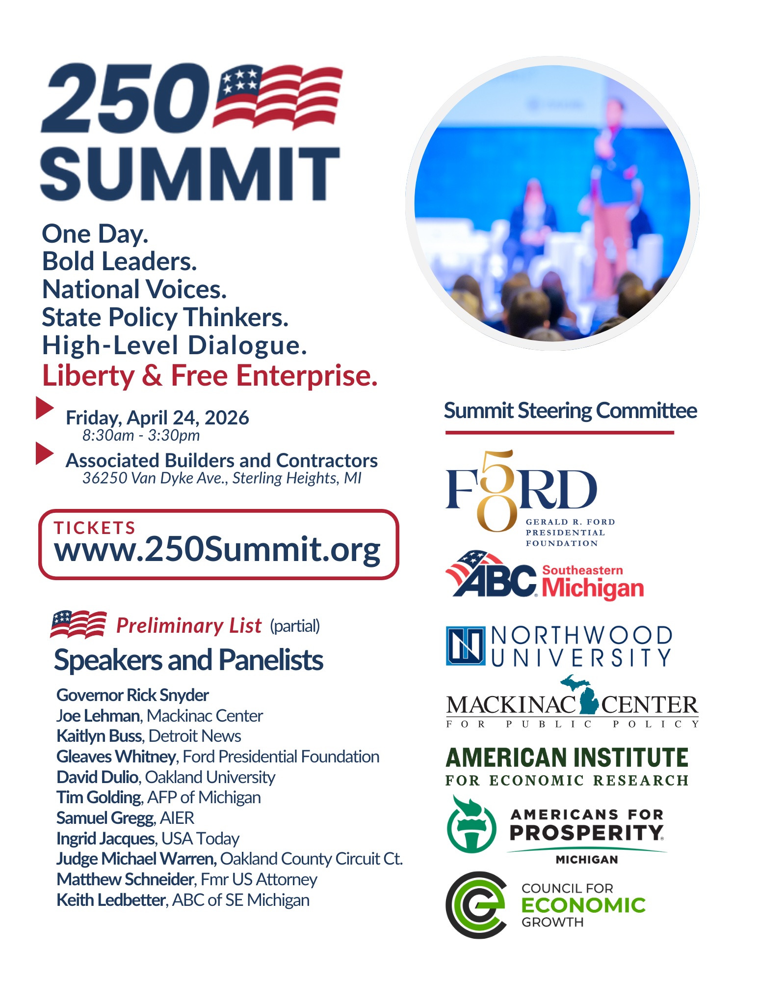 The Council for Economic Growth is a leading free enterprise advocacy group in Michigan. Our diverse and bipartisan membership consists of some of the region’s most prominent and successful business owners, professionals, and elected leaders who are connected by their shared motivation to see free enterprise thrive and Michigan prosper.